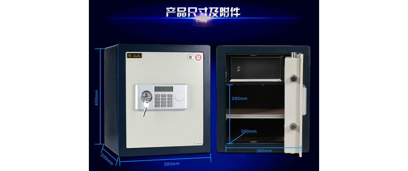 永發經典電子系列3C認證保險箱D-45BL3C尺寸說明:450高*390寬*330深mm 重量:46kg