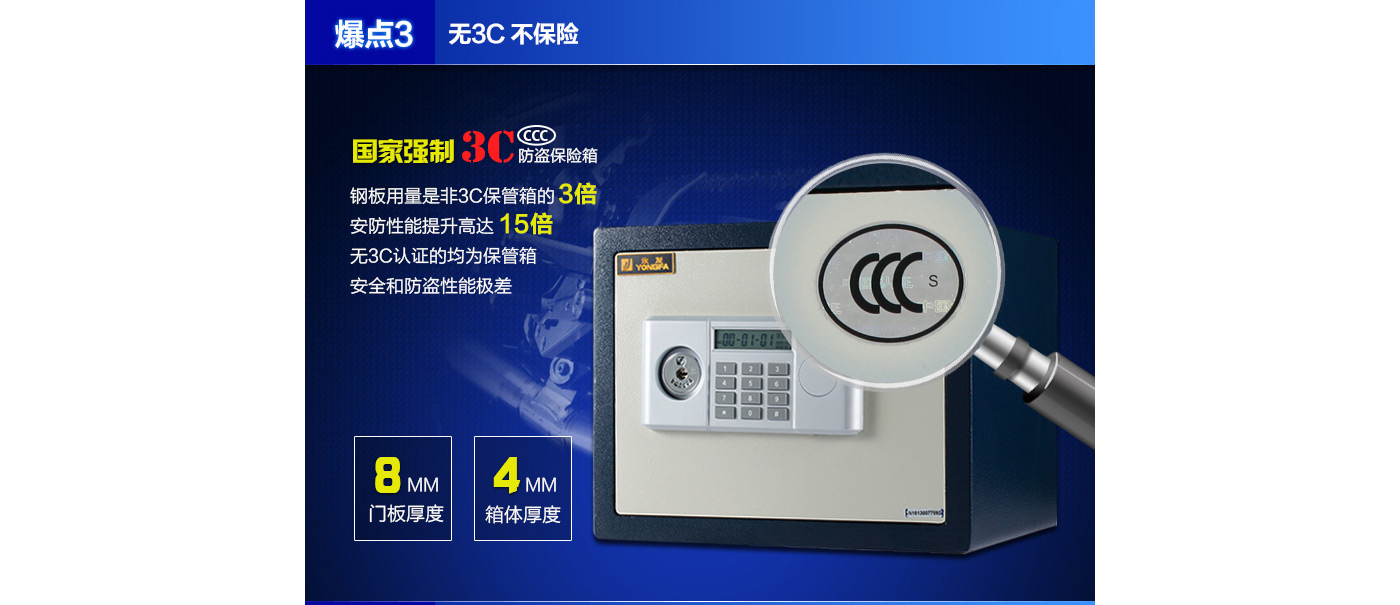 永發經典電子系列3C認證保險箱D-30BL3C尺寸說明:300高*380寬*310深mm 重量:30kg