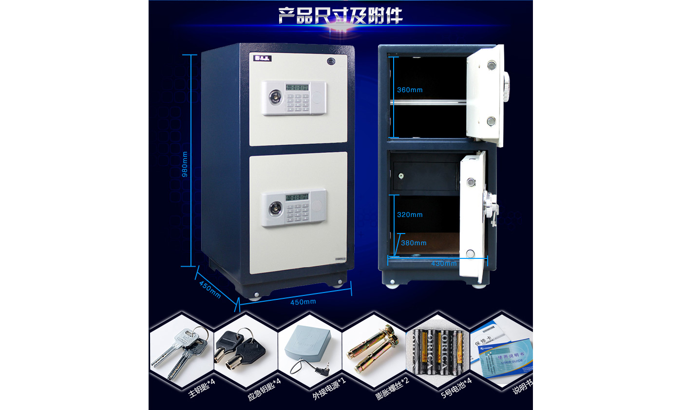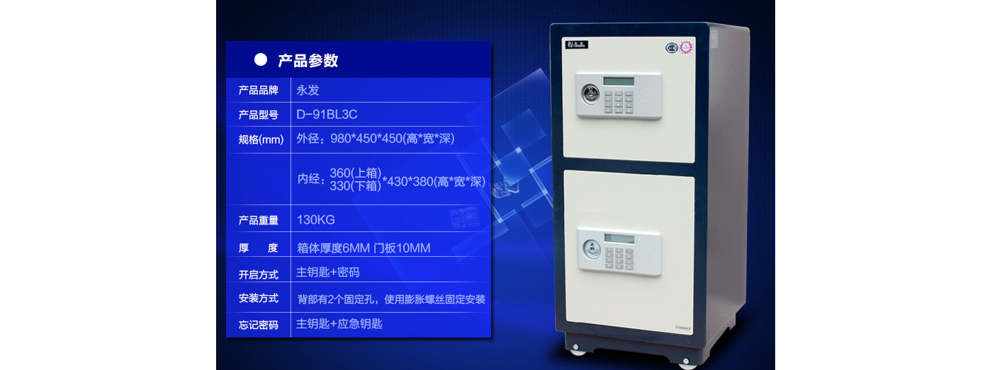永發(fā)經(jīng)典電子系列3C認證保險箱D-91BL3C/d尺寸說明:980高*450寬*450深mm(含底座) 重量:129kg