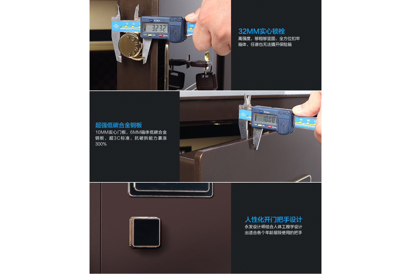 永發尚瑞系列指紋式3C保險柜50BPM3C-13尺寸說明:560高*430寬*380深mm(含底座) 重量:73kg