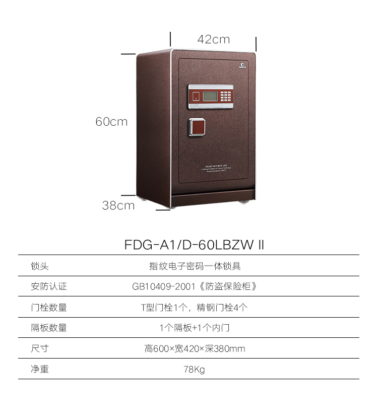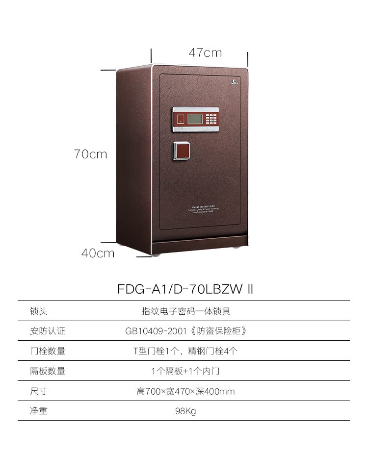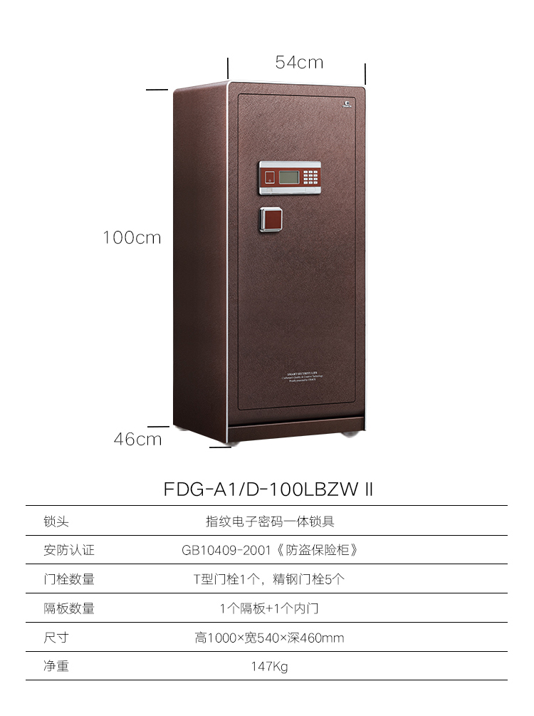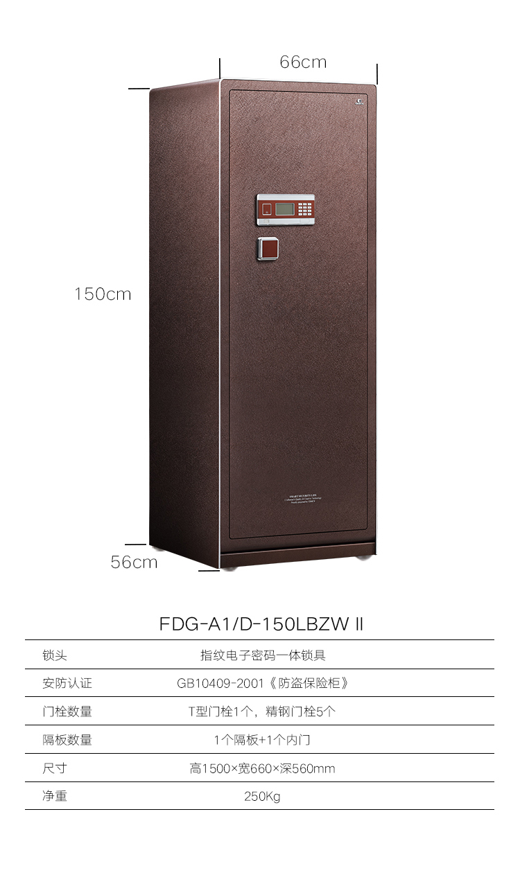 卡嘜樂寶指紋+電子密碼系列3C認證保險箱D-150LBZWII尺寸說明:1500高*660寬*560深mm(含底座) 重量:250kg