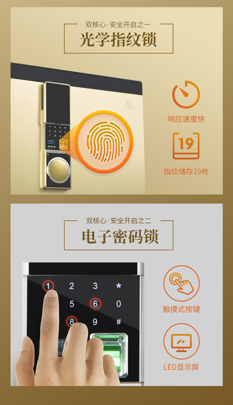 卡嘜萬寶指紋+電子密碼系列3C認證保險箱D-80iAZW1尺寸說明:850高*475寬*430深mm(含底座) 重量:123kg